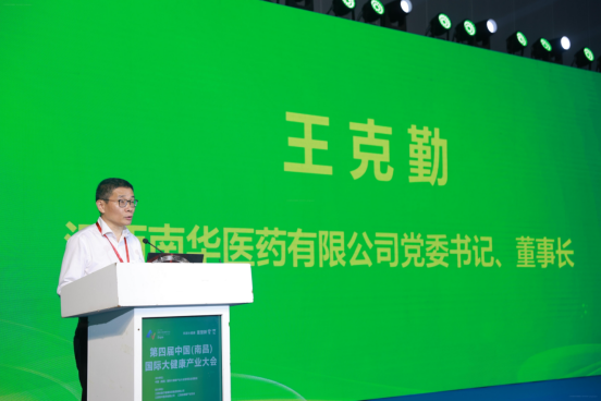 ▲江西南華醫(yī)藥有限公司黨委書記、董事長王克勤給大會致辭